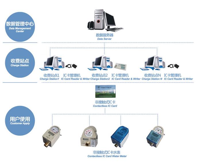 IC卡水表系統(tǒng)以IC卡作為數(shù)據(jù)載體,在微機(jī)系統(tǒng)管理軟件下可實(shí)現(xiàn)用水收費(fèi)、數(shù)據(jù)存儲分析、監(jiān)控水表運(yùn)行狀態(tài)等功能,從而對水資源實(shí)現(xiàn)科學(xué)化、系統(tǒng)化、透明化的管理。本系統(tǒng)可通過預(yù)付費(fèi)、水表自動核減水量、根據(jù)水量自動開關(guān)閥等途徑,解除傳統(tǒng)人工抄表擾民、耗費(fèi)大量時間和精力等難題,并杜絕惡意欠費(fèi)。IC卡水表系統(tǒng)可有效提高管理部門的效益,已廣泛在高校、物業(yè)中心等全國各行業(yè)成功運(yùn)用。